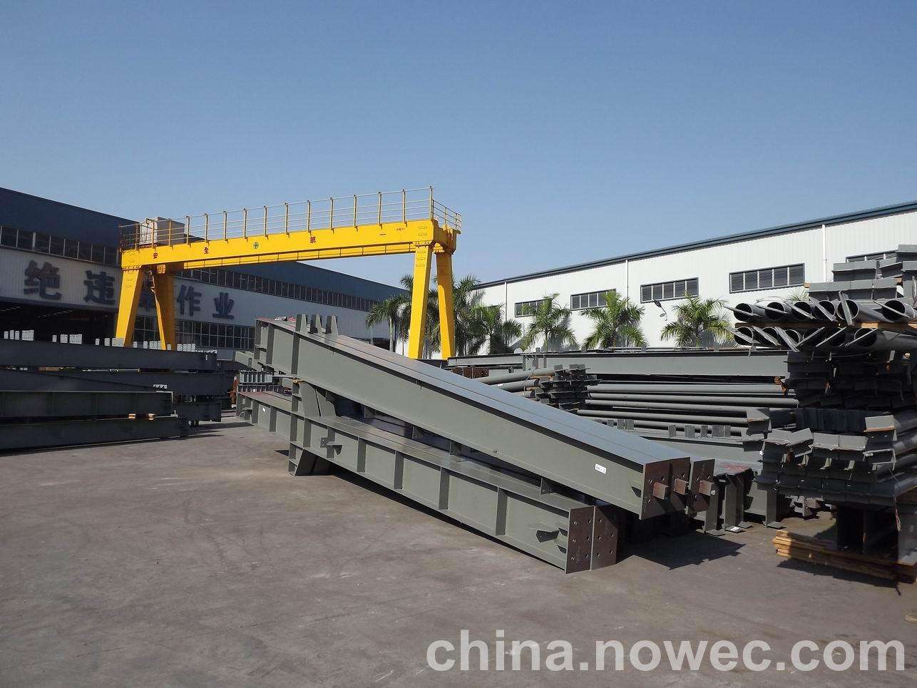 条状单元一般沿长跨方向分割,其宽度约为1~3个网格,其长度为l2或l2/2(l2为短跨跨距)。块状单元一般沿莱芜网架平面纵横向分割成矩形或正方形单元。每个单元的重量以现有起重机能胜任为准。条(块)与条(块)之间可以直接拼装,也可空一网格在高空拼装。由于条(块)状单元是在地面拼装,因而高空作业量较高空散装法大为减少,拼装支架也减少很多,又能充分利用现有起重设备,故较经济。这种安装方法适用于分割后网架的钢度和受力状况改变较小的各类中小型网架,如两向正交正放四角锥、正放抽空四角锥等网架。